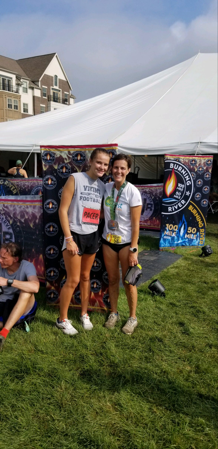 Kelly and after finishing Burning River 100 w/ her daughter pacing.